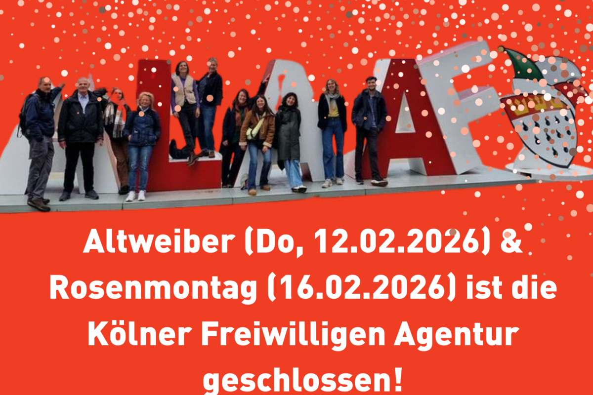 Die Kölner Freiwilligen Agentur wurde 1997 von engagierten Kölner Bürger/-innen gegründet. Unsere Vision ist eine Bürgergesellschaft, geprägt von Menschen, die das öffentliche Leben ihrer Stadt mitgestalten und bereichern. Die Kölner Freiwilligen Agentur trägt dazu bei, ein vielfältiges und wirksames Bürgerengagement in Köln zu entwickeln.
