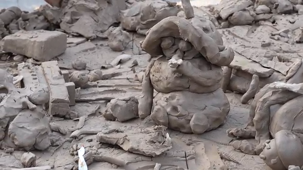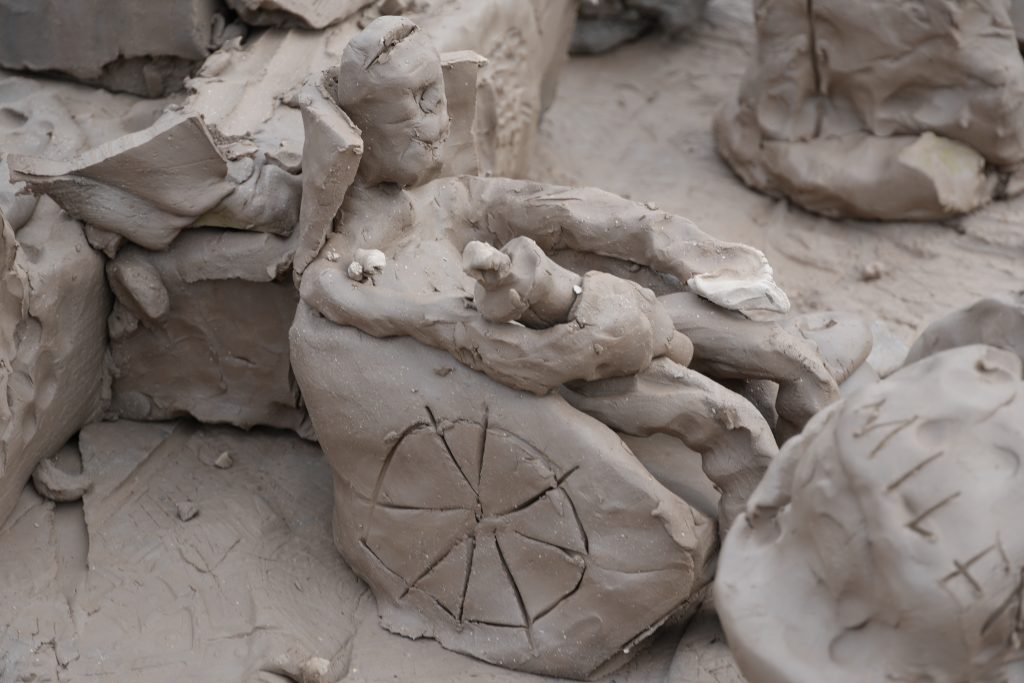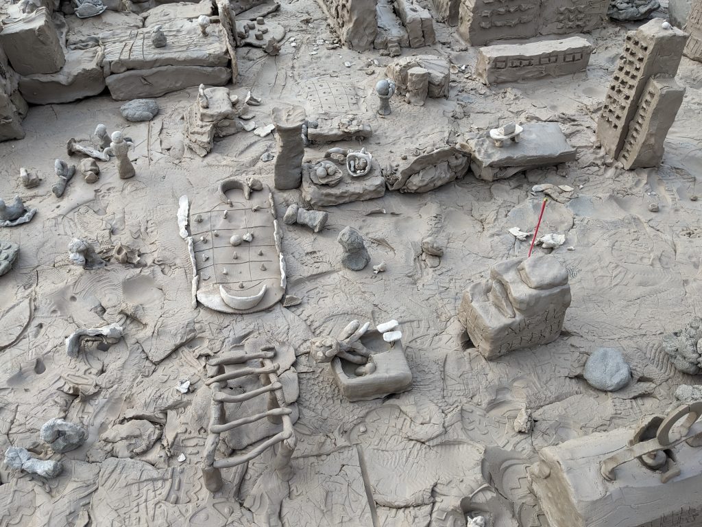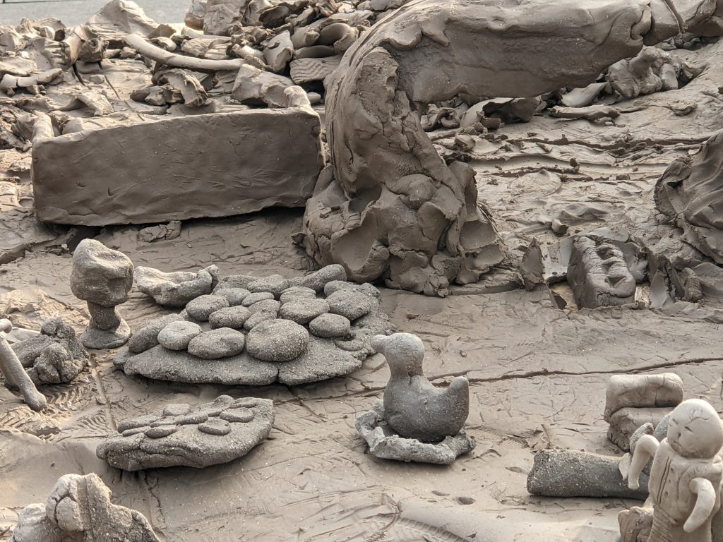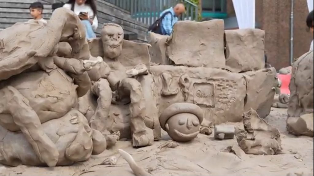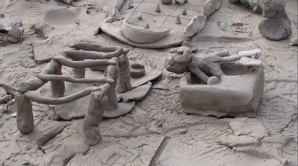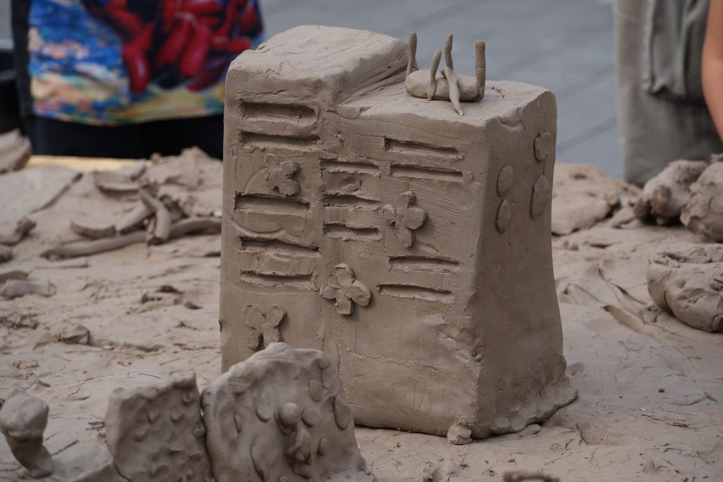 Mit Chorweiler in Ton ging es uns deshalb in erster Linie darum, einen Ort herzustellen, an dem solche Begegnung stattfinden kann, jenseits eines explizit politischen Diskurses, aber dafür umso stärker an ein gemeinsam geteiltes Thema anknüpfend, nämlich den gemeinsam bewohnten, physischen Ort, und verbunden mit einem bleibenden Erlebnis: Es standen drei Tonnen (!) Ton zur Verfügung, um auf einer 4 x 4 Meter großen Plattform gemeinsam den Stadtteil nachzubauen. Dass sich daraus kein topografisch exaktes Abbild ergeben würde, stand von vornherein fest und war auch nicht Sinn der Übung. Vielmehr ging es uns darum, die Menschen über das Modellieren, z.B. ihres Lieblingsortes oder des eigenen Wohnhauses, ins Erzählen zu bringen. Diese Geschichten wurden festgehalten (u.a. durch separat am Rand geführte Videointerviews, aber auch durch Notizen und Tonaufnahmen der Bündnispartner) und werden gesammelt. Sie stellen die eigentliche „Ernte“ des Projekts dar, denn das Tonmodell selber kann aufgrund seiner Größe nicht gebrannt, sondern nur als Material (in diesem Fall durch die Jugendwerkstatt Chorweiler) wiederverwendet werden.