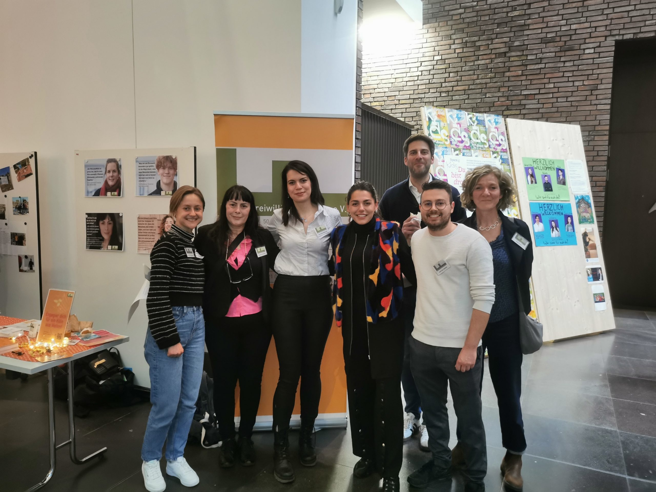 Unser ehrenamtliches Team Öffentlichkeitsarbeit hat ganzen Einsatz bei der Engagier dich! Engagement Messe gezeigt. Nicht nur haben sie den Info-Stand betreut und interessierte Menschen über das Ehrenamt im Bereich Willkommenskultur aufgeklärt. Auch hat eines unserer Teammitglieder – Joel dos Santos – den Fußball-Slalom gewonnen und dadurch Tickets für ein Fußballspiel ergattert, überreicht von Manjou Wilde, Profi-Fußballerin, hier in der Mitte im Bild!
