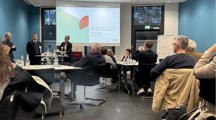 Die Keynote Speaker vom Mittlernetzwerk für Unternehmensengagement und dem Stifterverband regten die Gespräche mit Zahlen, Daten, Fakten der letzten bundesweiten Erhebungen zu bürgerschaftlichem Engagement von Unternehmen und den aktuellen Erfahrungen ihrer Mitgliedsorganisationen im gesamten Bundesgebiet an – Thesen und Mythen wurden kontrovers diskutiert…. Monitor Unternehmensengagement 2025
